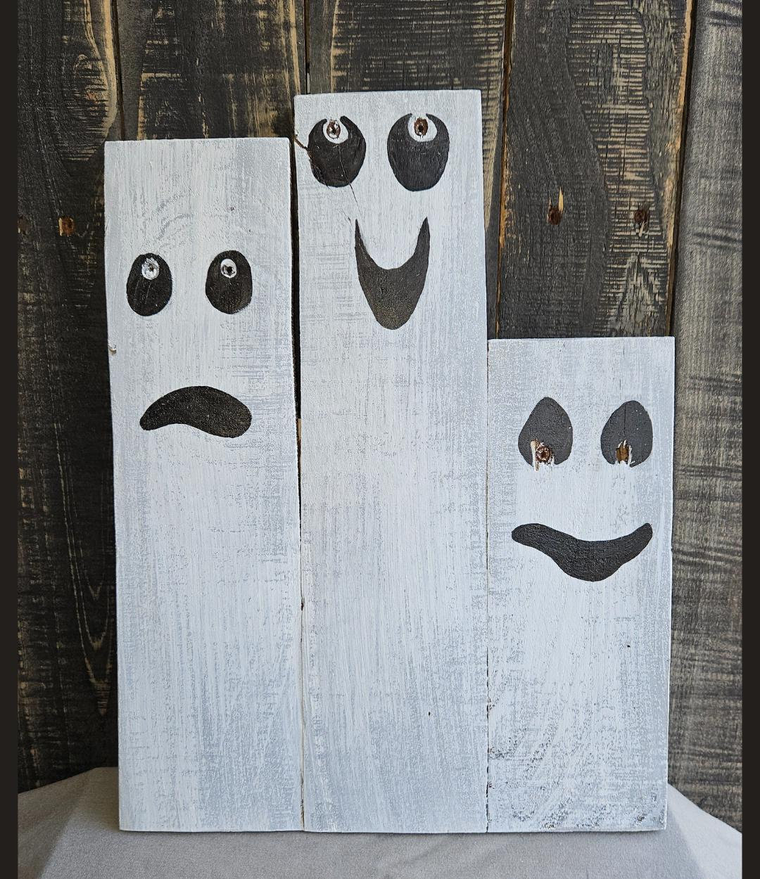 Embrace the spirit of the season with our charming Rustic Wood Ghost Trio! Crafted from reclaimed wood, this delightful trio features unique grain patterns and textures, making them one-of-a-kind pieces of art. Their minimalist design, complete with hand-painted facial expressions, adds a playful yet spooky touch to your autumn decor.